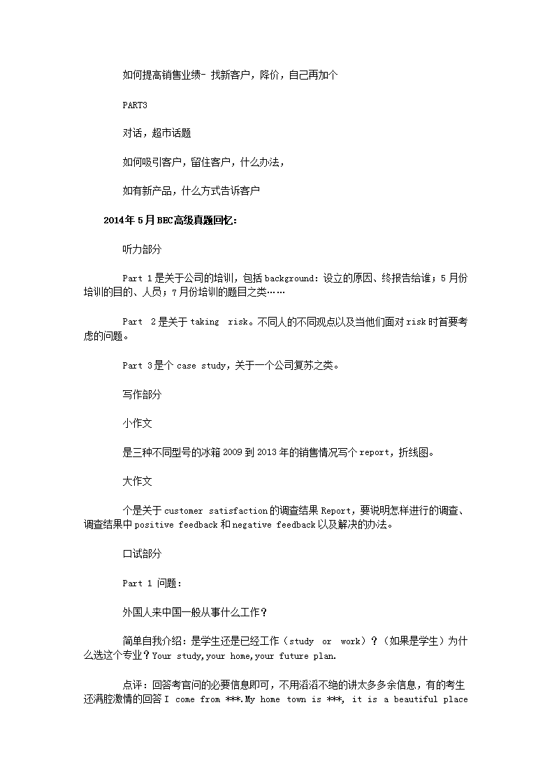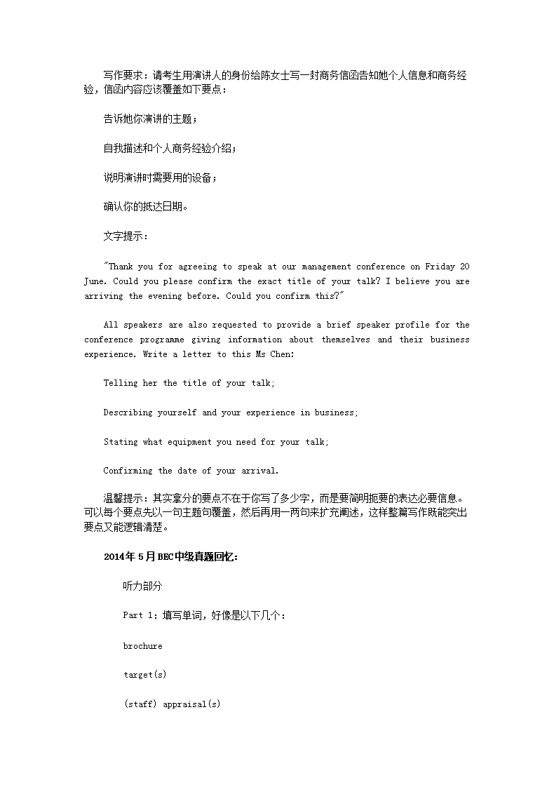 【文档名称】 2014年5月剑桥商务英语BEC考试真题回忆(Word版).doc