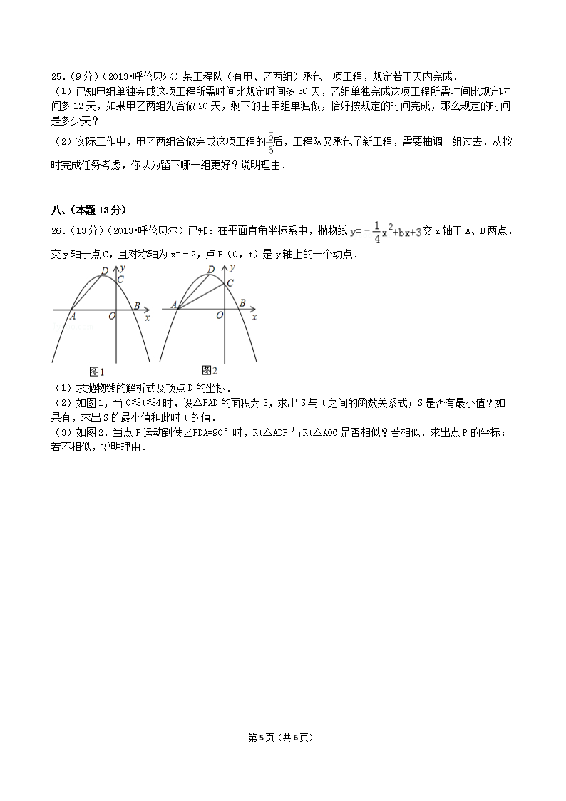 【文档预览】 无忧考网整理发布2013年内蒙古呼伦贝尔市中考数学真题及答案(Word版),前五页预览如下: