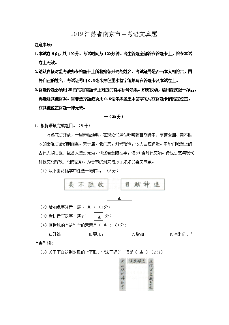 【文档预览】 无忧考网整理发布2019江苏省南京市中考语文真题(Word版),前五页预览如下: