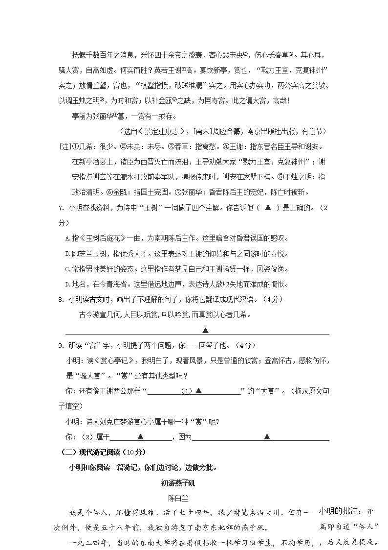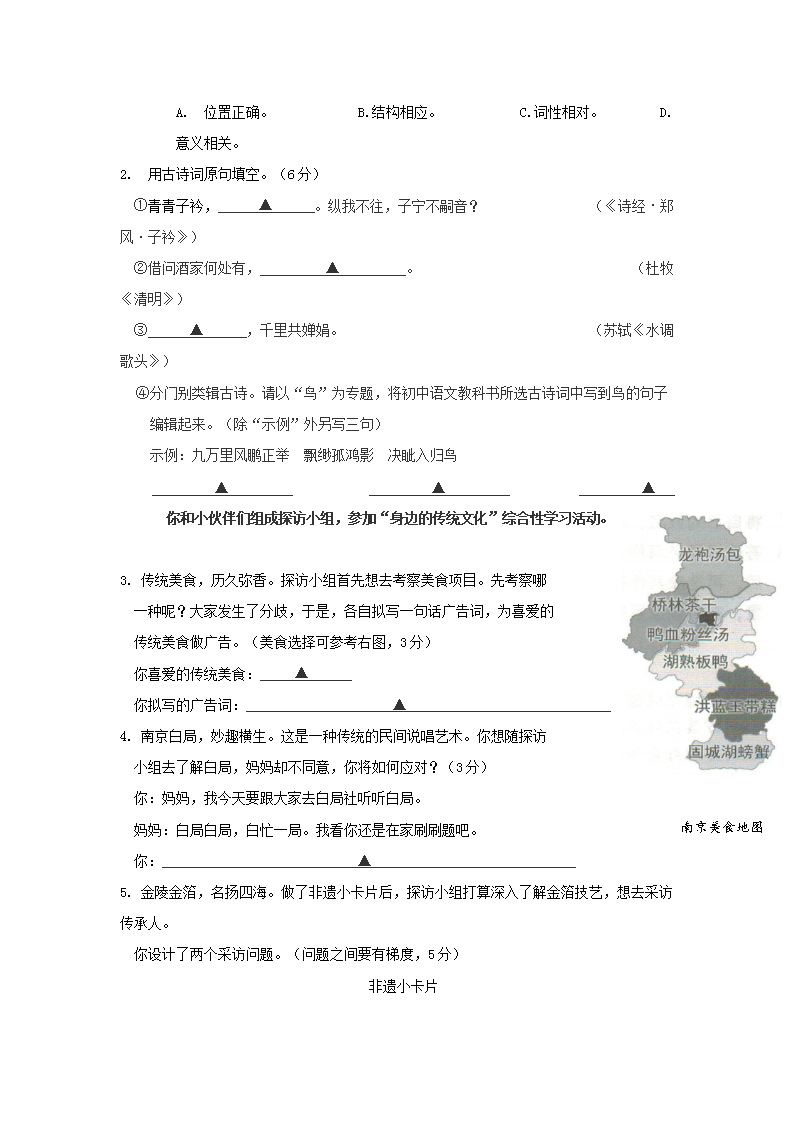 【文档名称】 2019江苏省南京市中考语文真题(Word版).doc