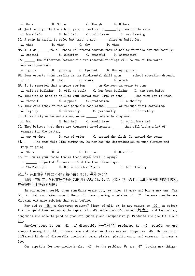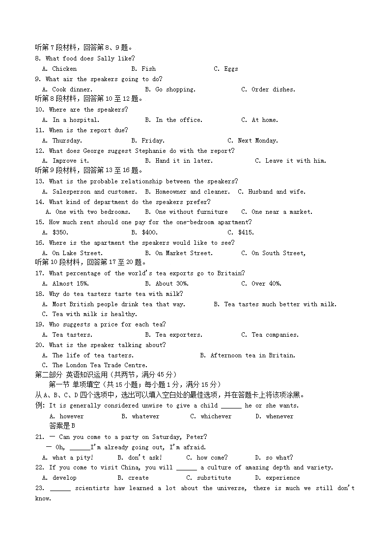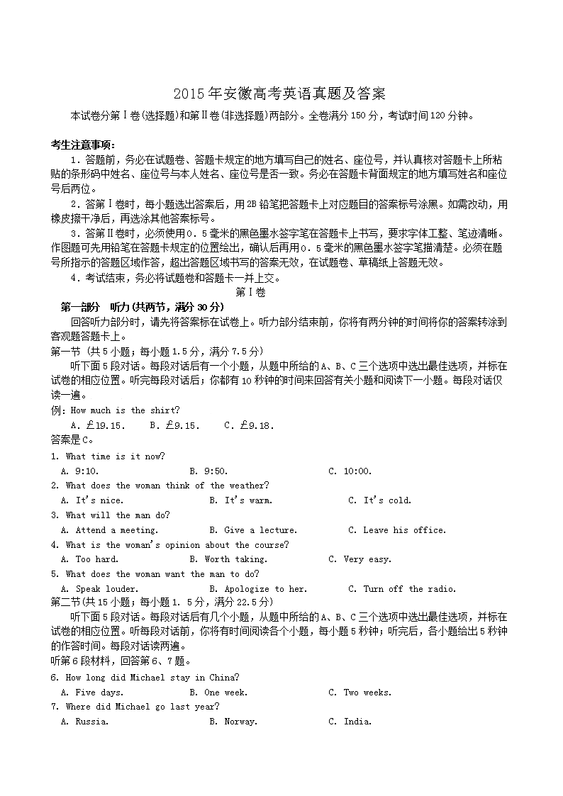 【文档名称】 2015年安徽高考英语真题及答案(Word版).doc