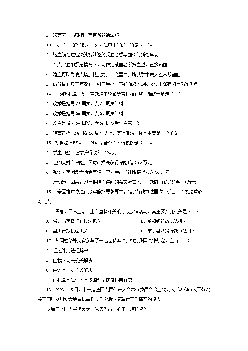 【文档名称】 2009年秋季福建公务员考试行测真题与答案(Word版).doc