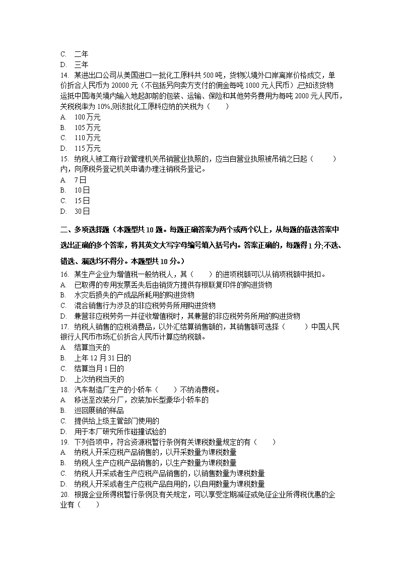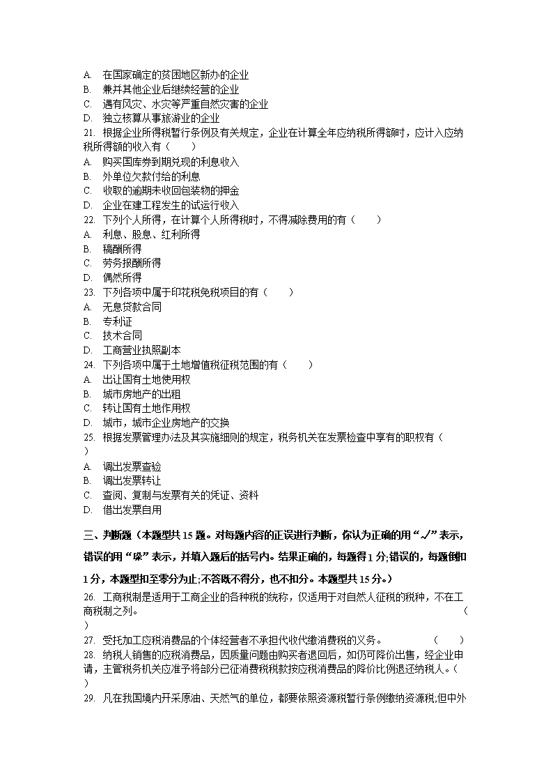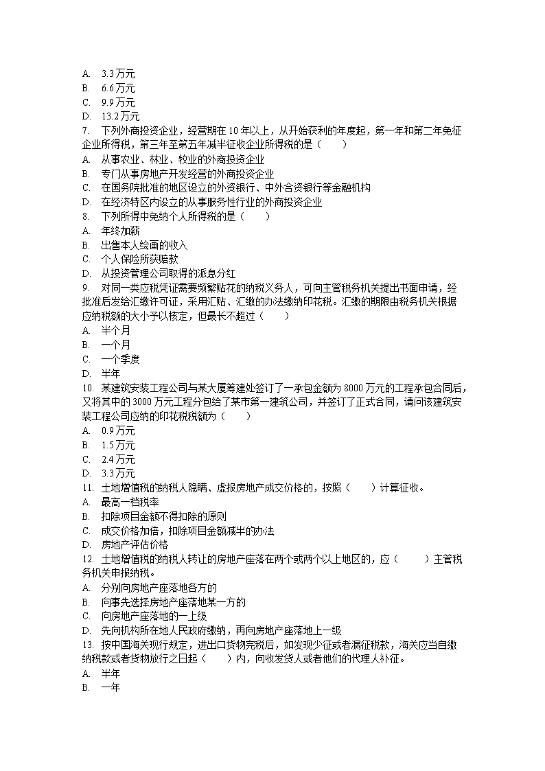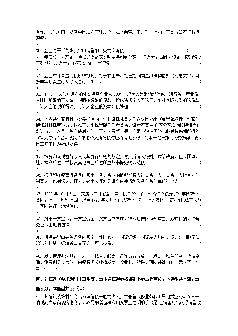 【文档预览】 无忧考网整理发布1997年注册会计师税法考试真题及答案(Word版),前五页预览如下: