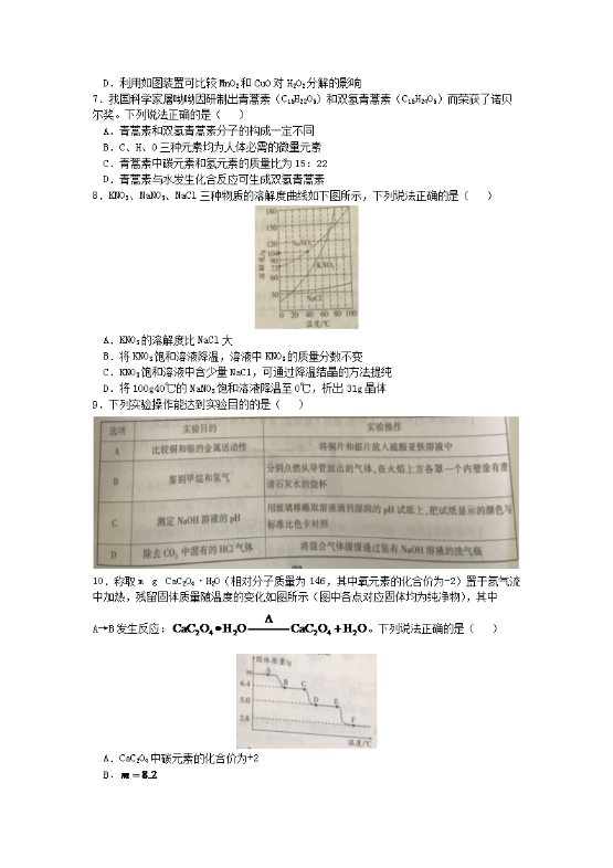 【文档名称】 2019江苏省南通市中考化学真题及答案(Word版).doc