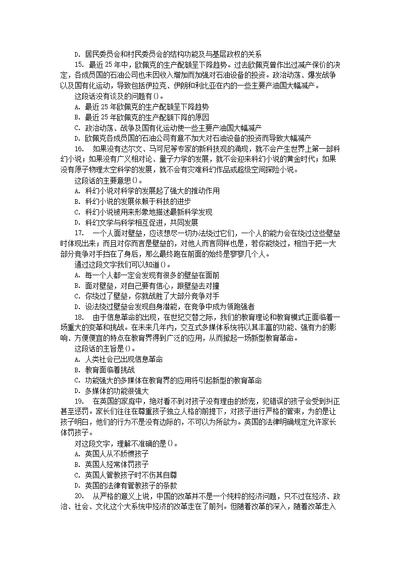 【文档预览】 无忧考网整理发布2006年河北公务员行测考试真题及答案(Word版),前五页预览如下:
