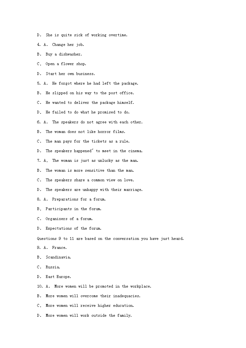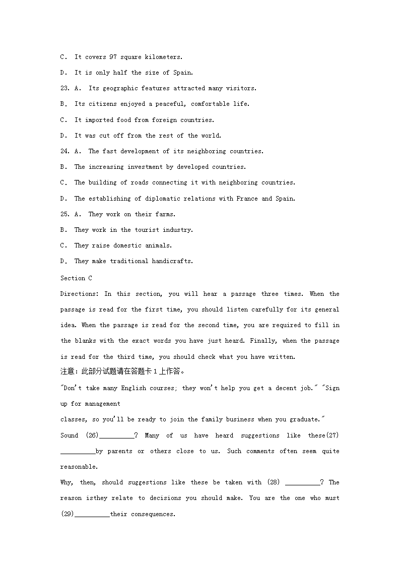【文档名称】 2014年12月英语四级真题及答案第一套(Word版).doc