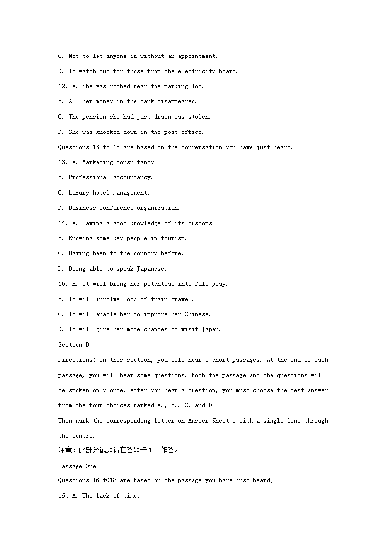 【文档预览】 无忧考网整理发布2014年12月英语四级真题及答案第三套(Word版),前五页预览如下: