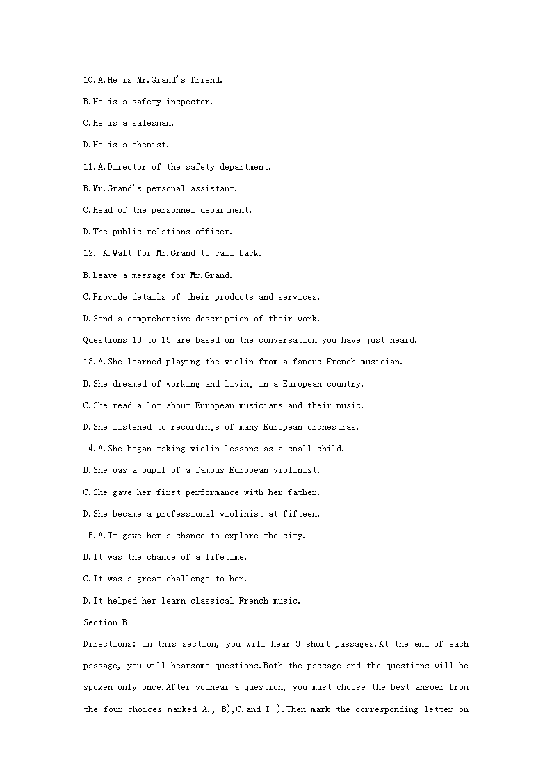 【文档名称】 2015年6月英语四级真题及答案第一套(Word版).doc