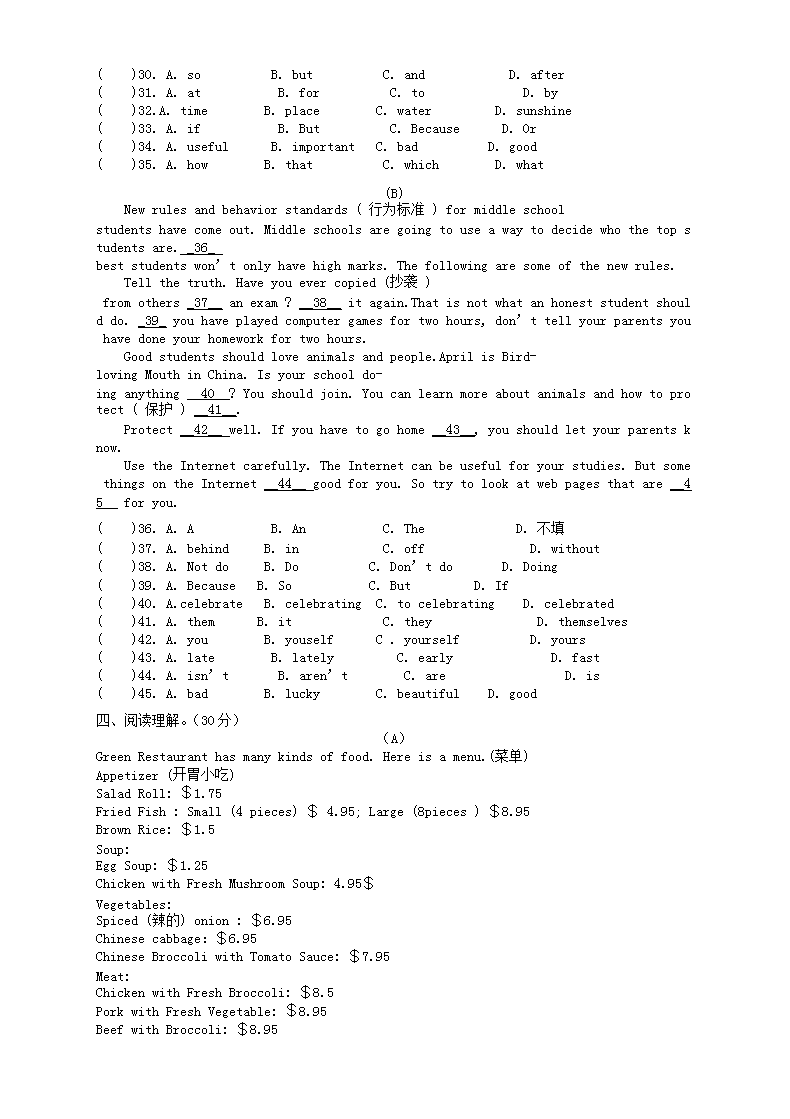 【文档预览】 无忧考网整理发布2012年广东广州中大附中小升初英语考试真题(Word版),前五页预览如下:
