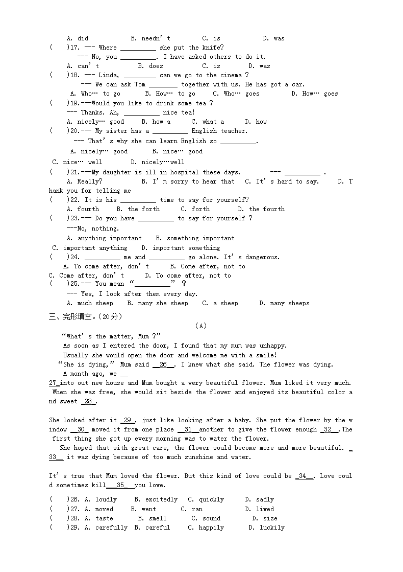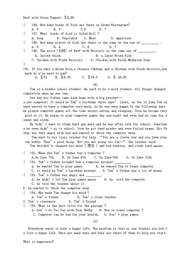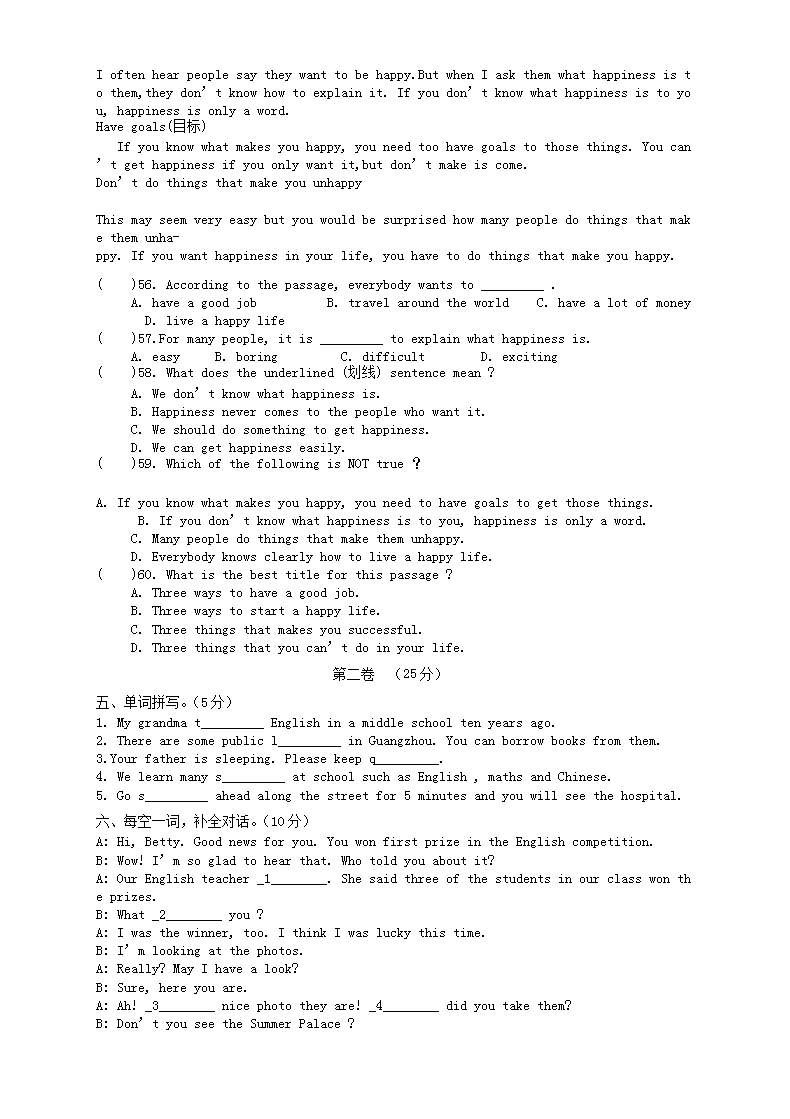 【文档名称】 2012年广东广州中大附中小升初英语考试真题(Word版).doc