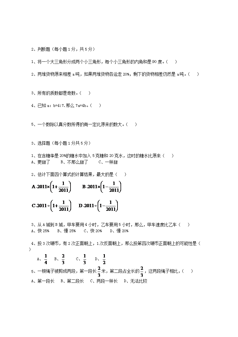 【文档预览】 无忧考网整理发布2013年广东广州小升初数学真题及参考答案(Word版),前五页预览如下: