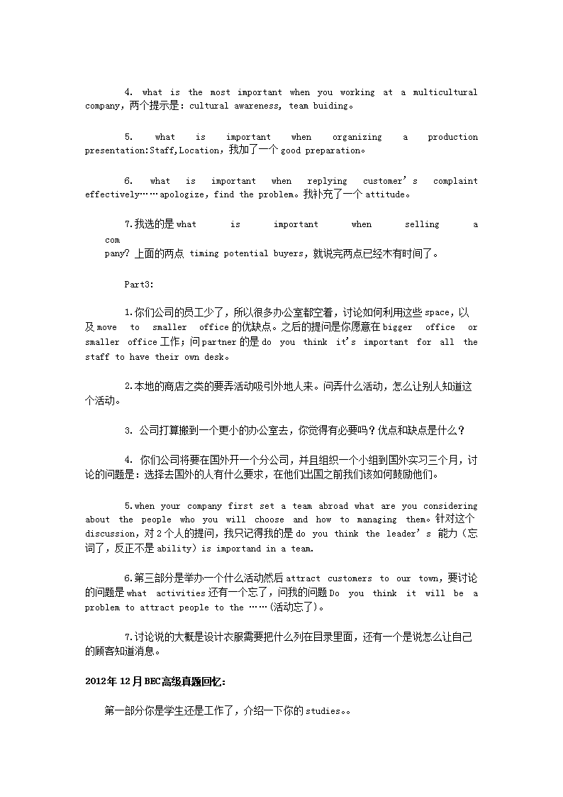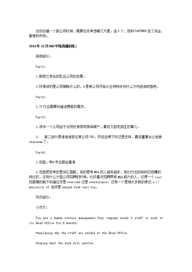 【文档名称】 2012年12月剑桥商务英语BEC考试真题回忆(Word版).doc