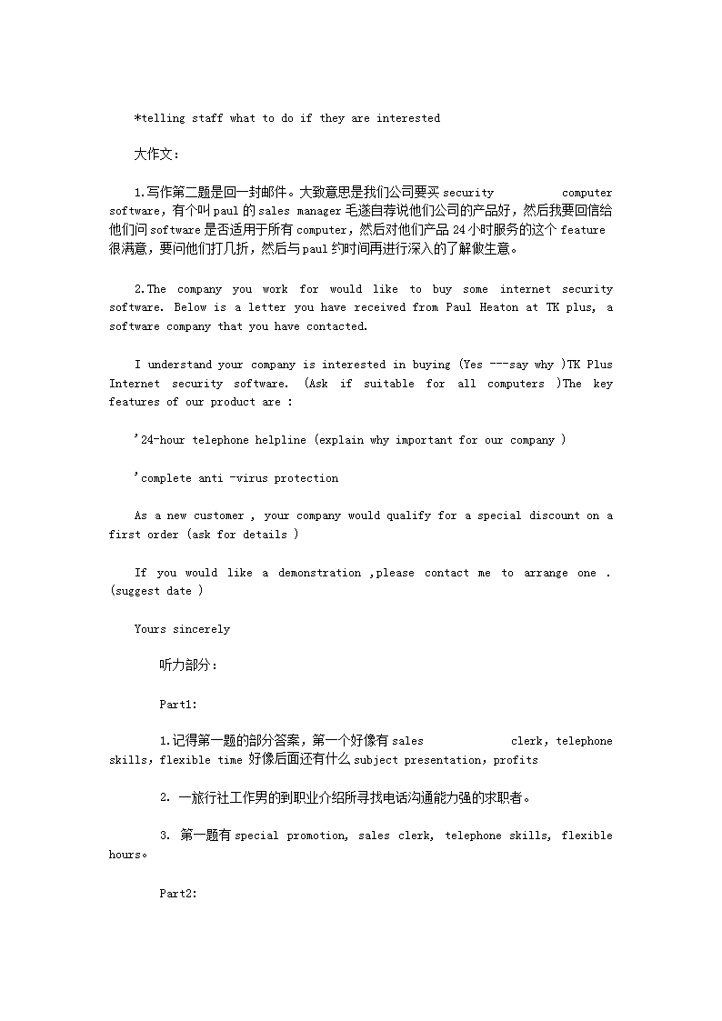 【文档预览】 无忧考网整理发布2012年12月剑桥商务英语BEC考试真题回忆(Word版),前五页预览如下: