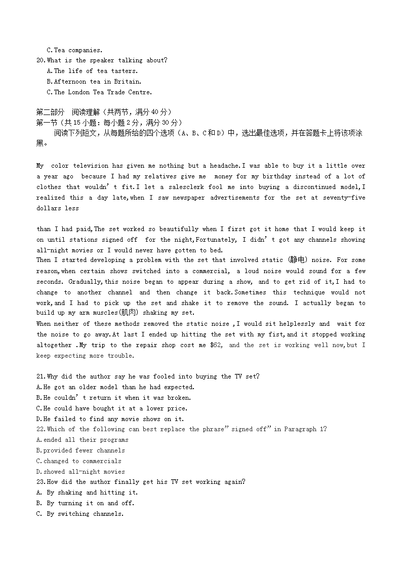 【文档预览】 无忧考网整理发布2015年广西高考英语真题及答案(Word版),前五页预览如下: