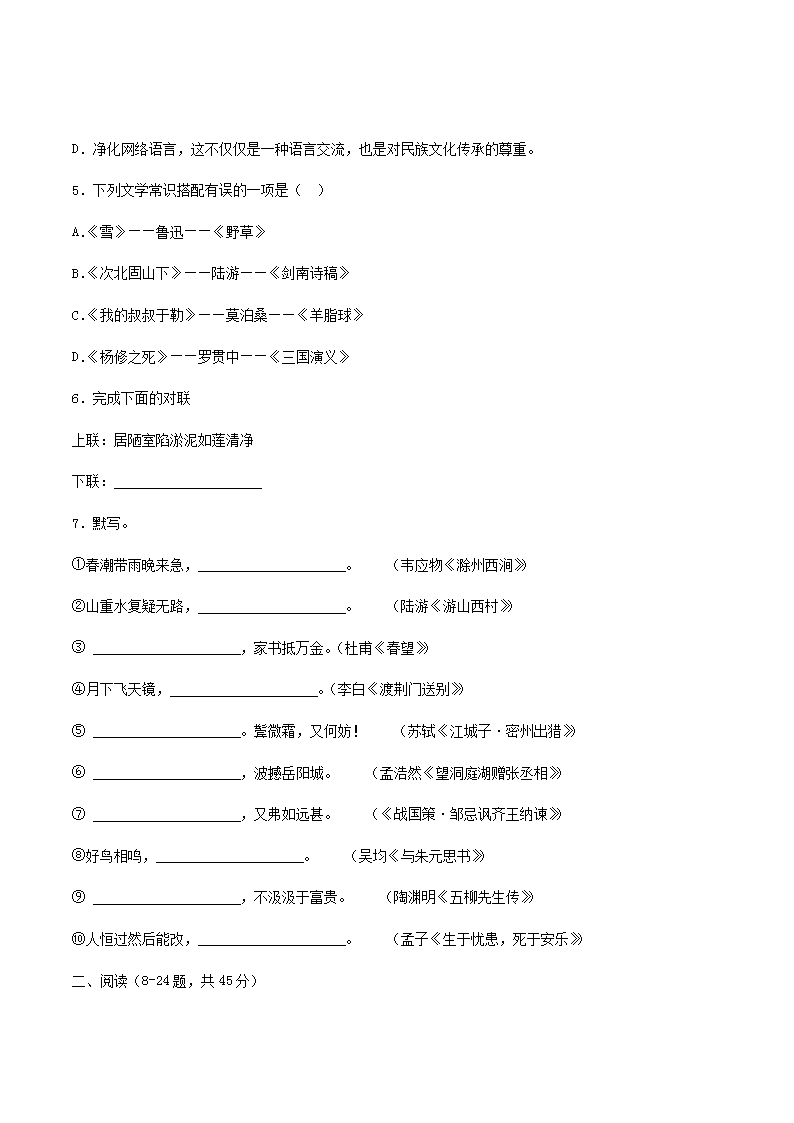 【文档预览】 无忧考网整理发布2016年内蒙古包头市中考语文真题及答案(Word版),前五页预览如下: