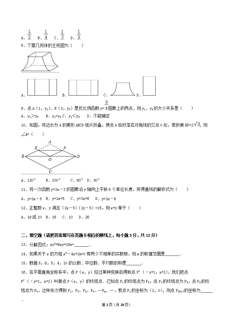 【文档名称】 2017年内蒙古赤峰市中考数学真题及答案(Word版).doc
