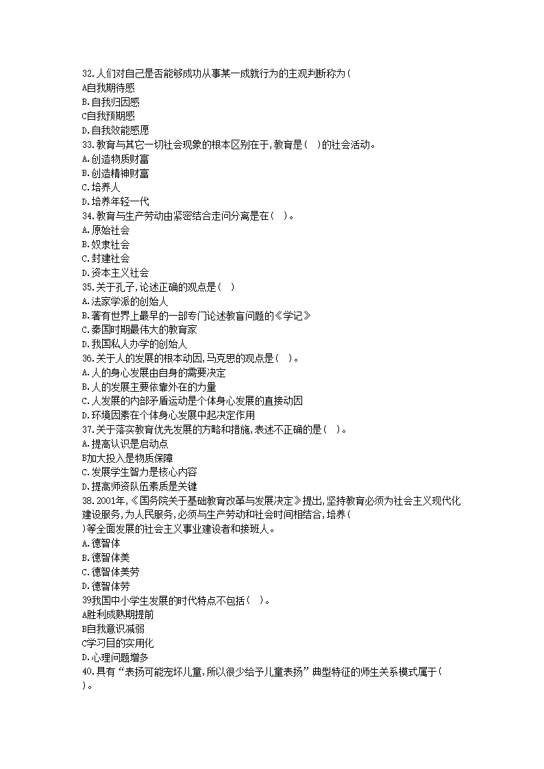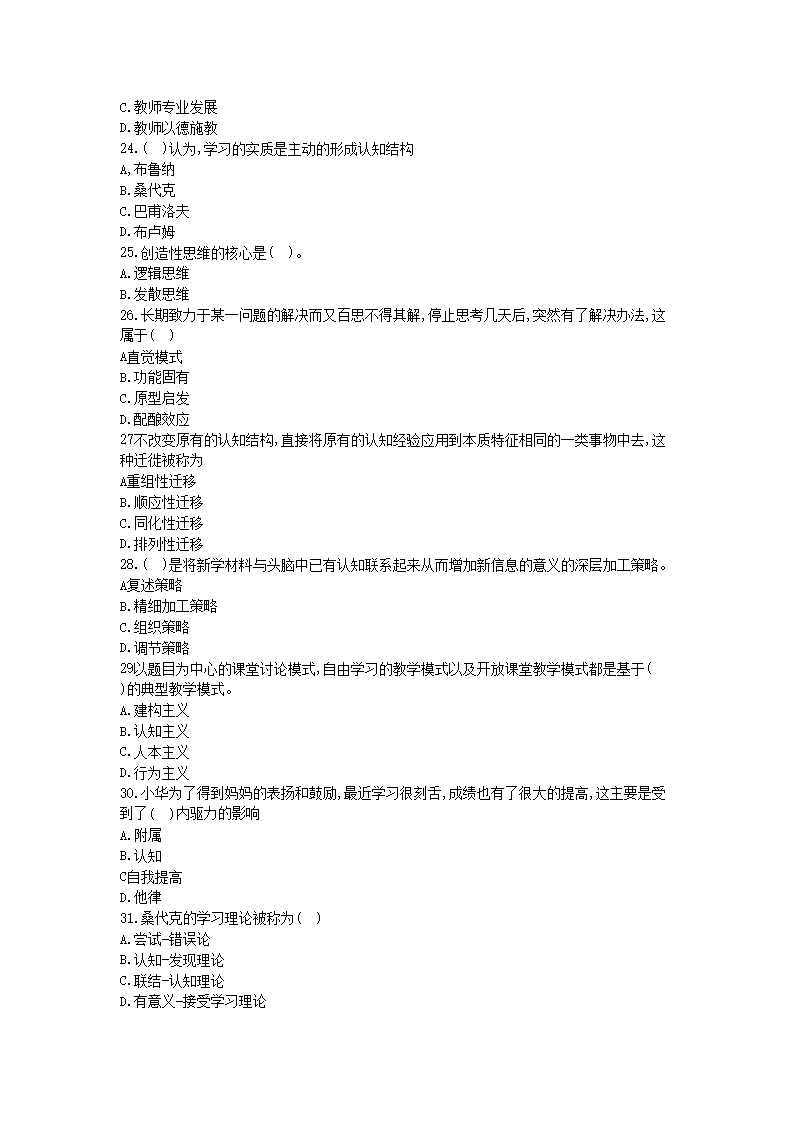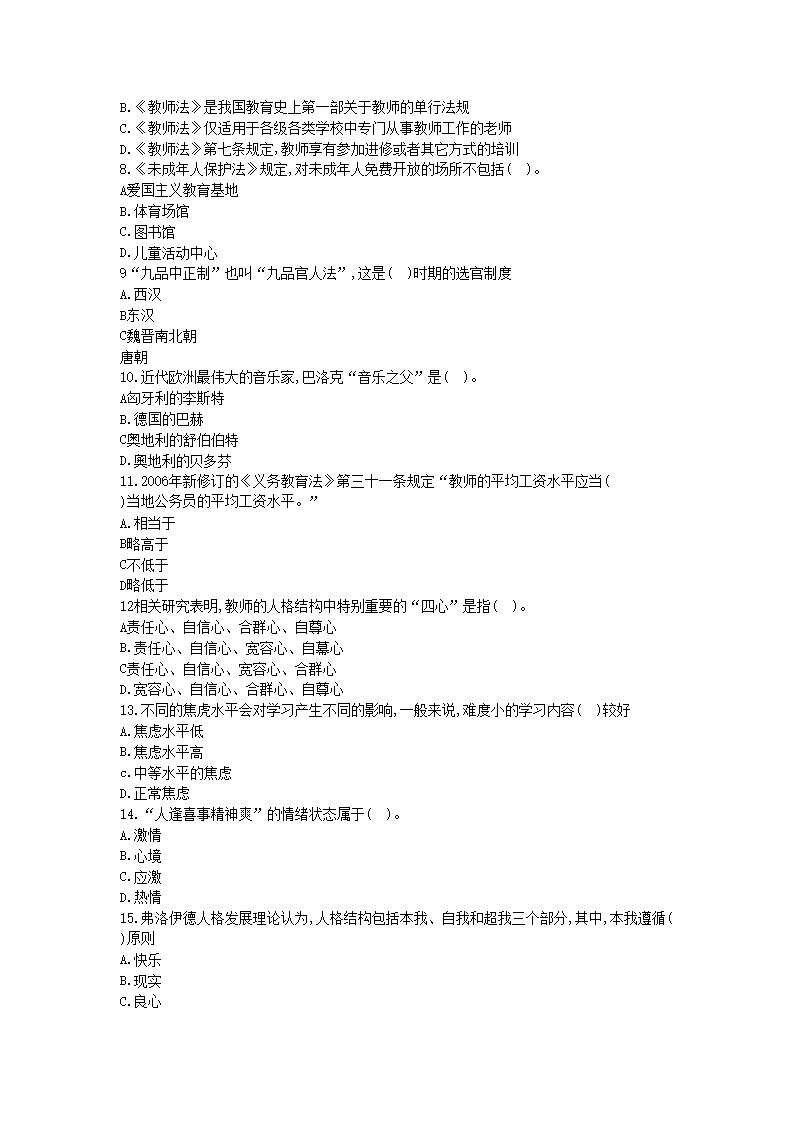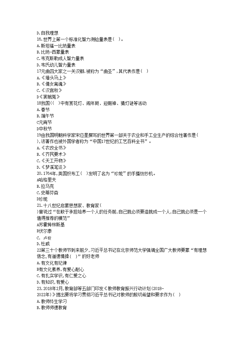 【文档名称】 2018江西中小学教师招聘考试教育综合知识真题及答案(Word版).doc