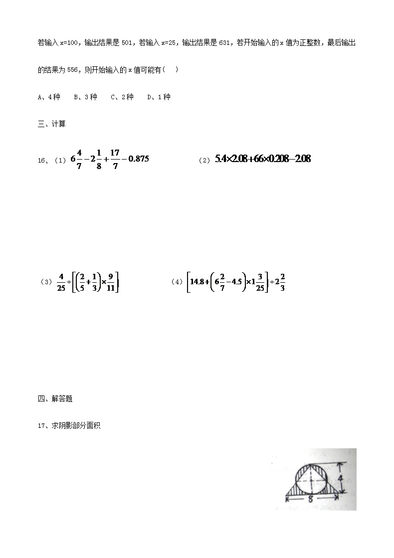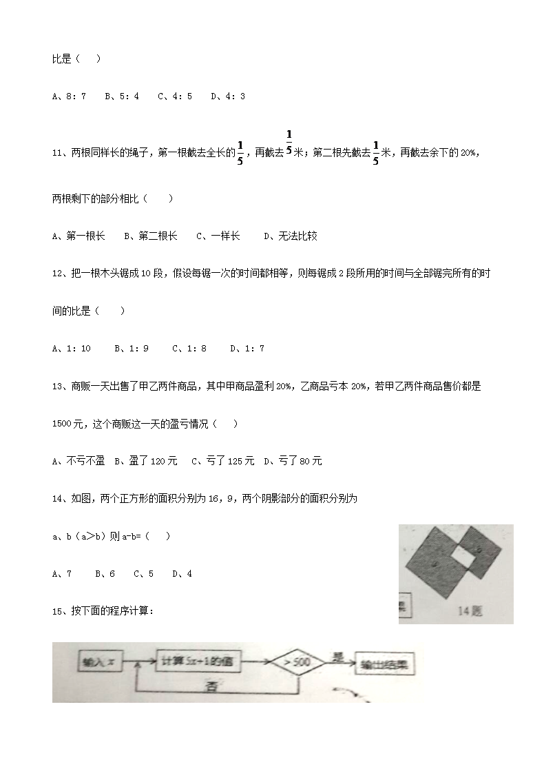 【文档名称】 2013年河北石家庄小升初数学考试真题(Word版).doc