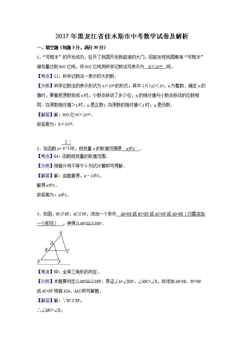 【文档名称】 2017年黑龙江省佳木斯市中考数学试卷及解析(Word版).doc