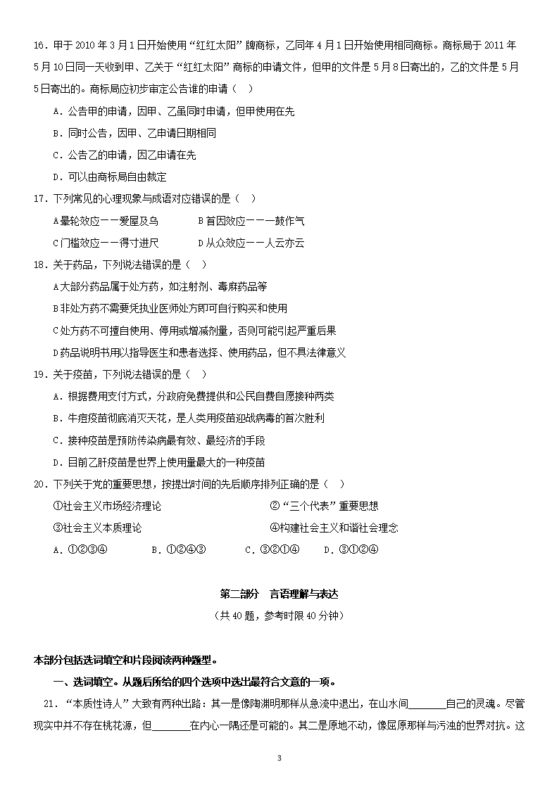 【文档名称】 2016年河北公务员行测考试真题及答案(Word版).doc