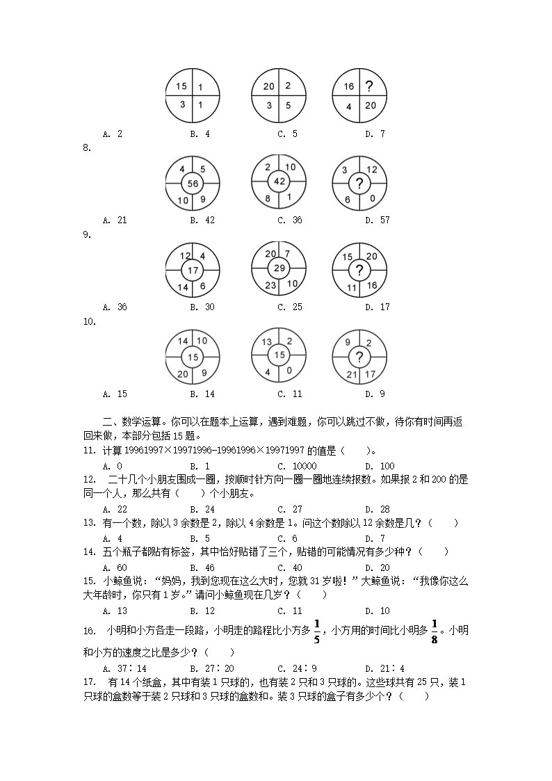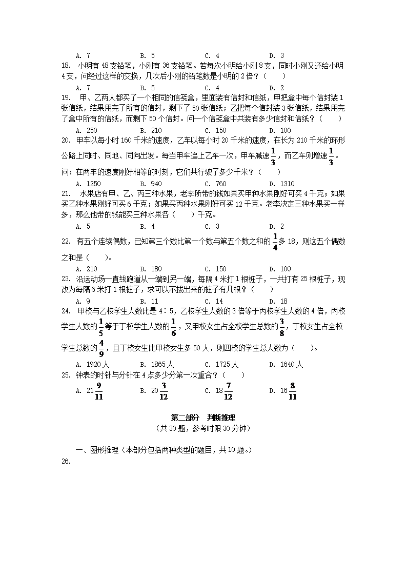 【文档名称】 2006上半年北京公务员行测考试真题及答案(Word版).doc