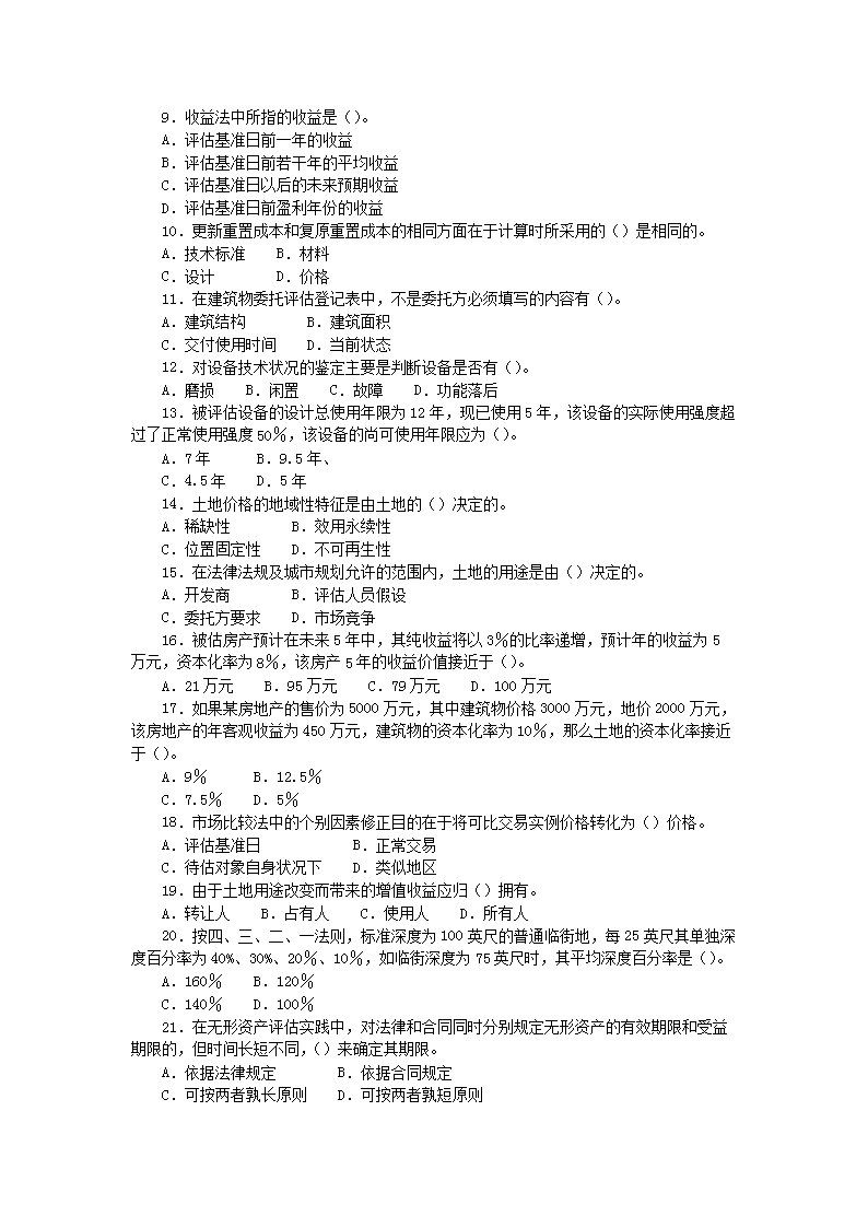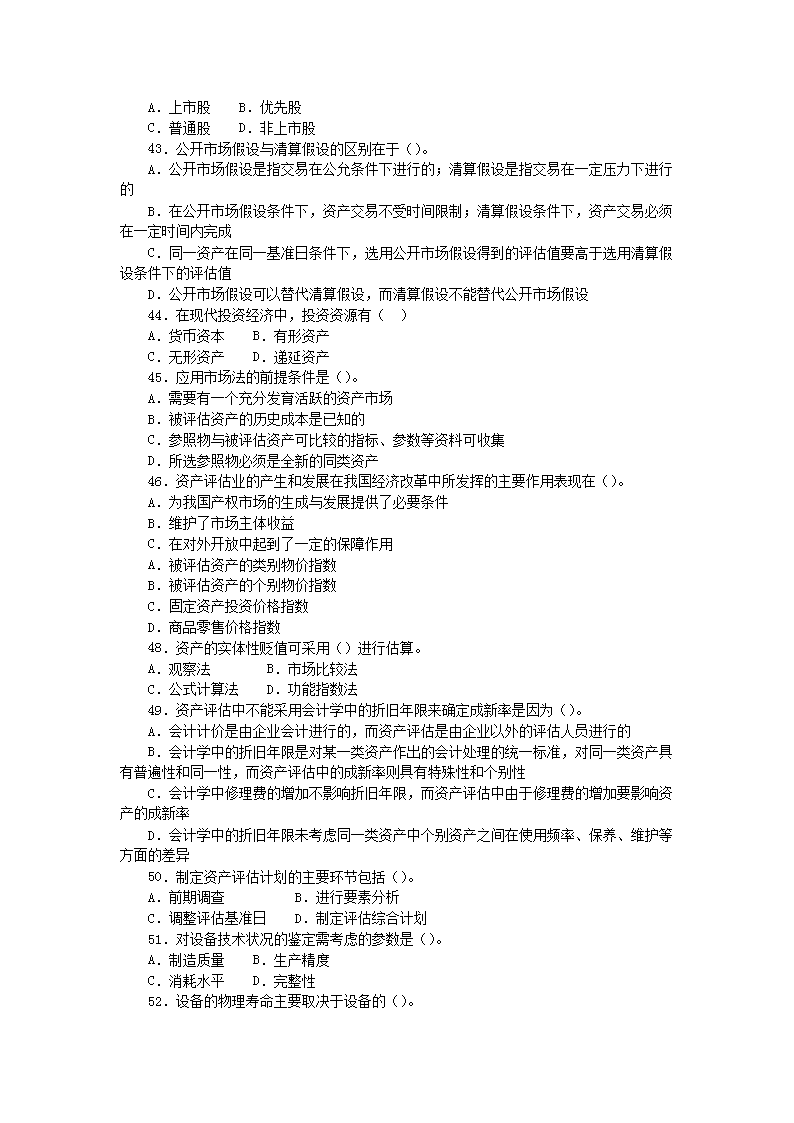 【文档预览】 无忧考网整理发布2000年资产评估学考试真题及答案(Word版),前五页预览如下: