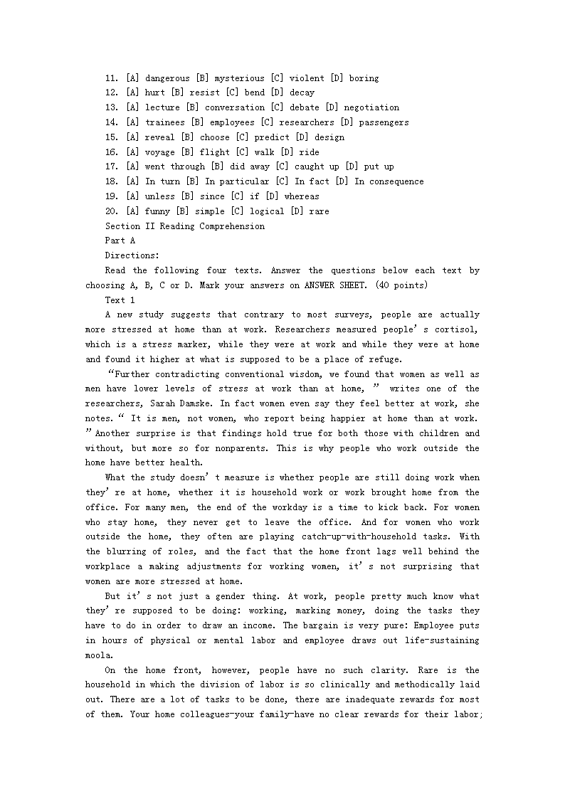 【文档名称】 2015考研英语二真题及答案(Word版).doc