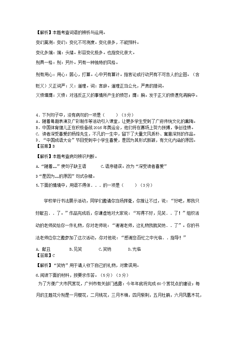 【文档名称】 2016年广东省广州市中考语文试卷及答案(Word版).doc