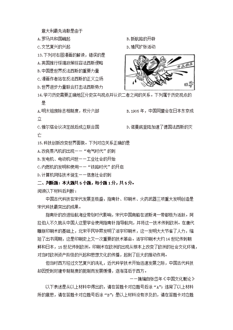 【文档名称】 2016年重庆市中考历史真题及答案B卷(Word版).doc