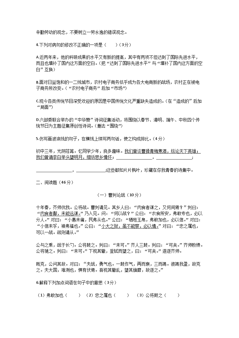 【文档预览】 无忧考网整理发布2016年广东省河源市中考语文试题及答案(Word版),前五页预览如下:
