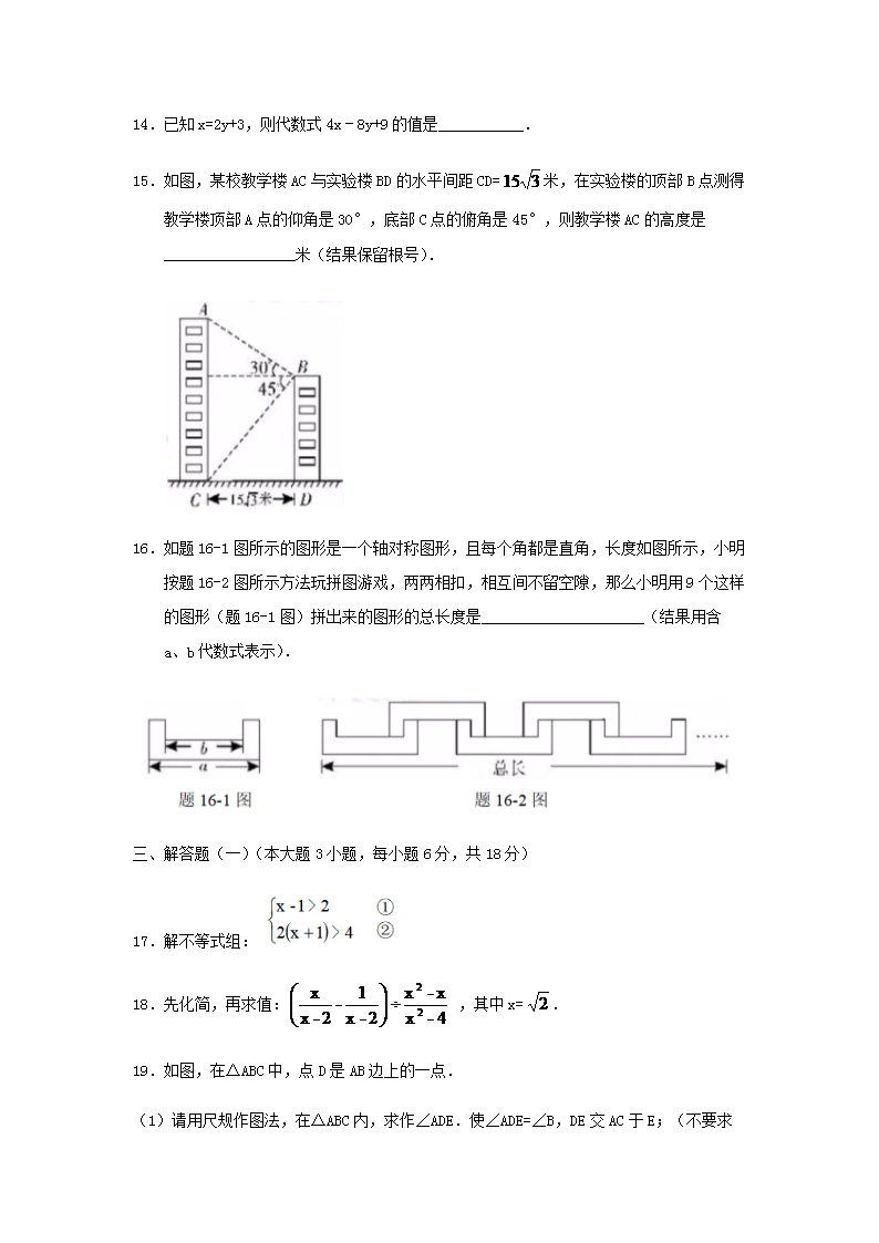 【文档预览】 无忧考网整理发布2019年广东省潮州市中考数学试题及答案(Word版),前五页预览如下: