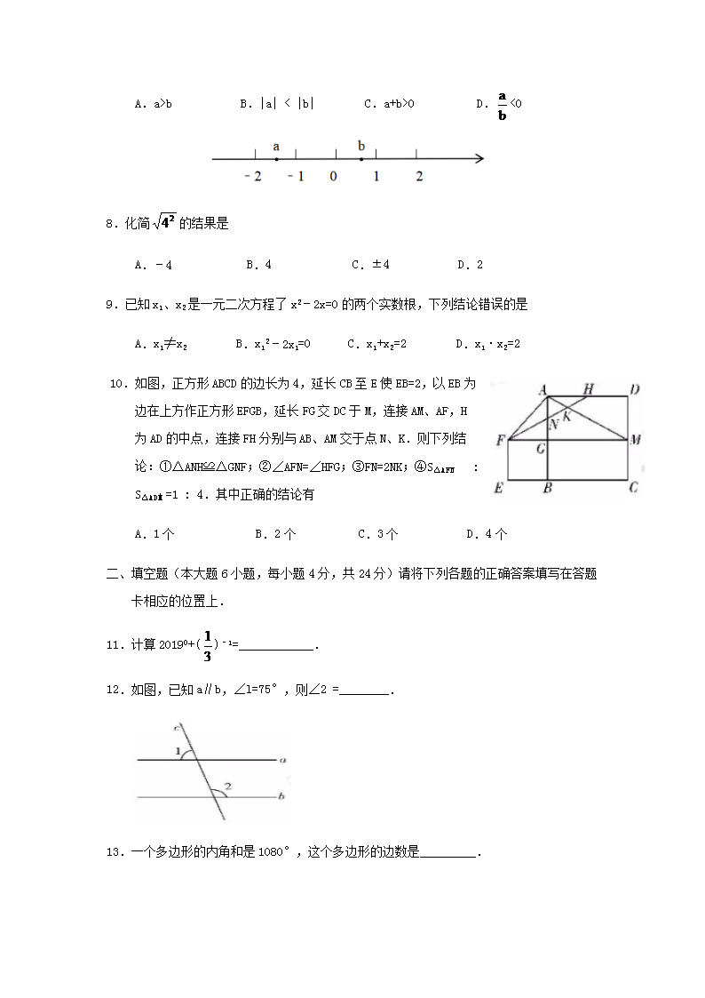 【文档名称】 2019年广东省潮州市中考数学试题及答案(Word版).doc