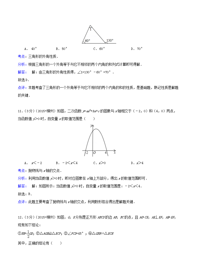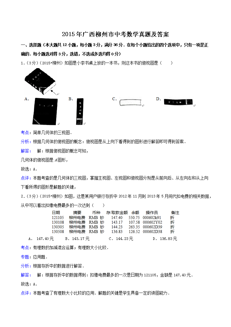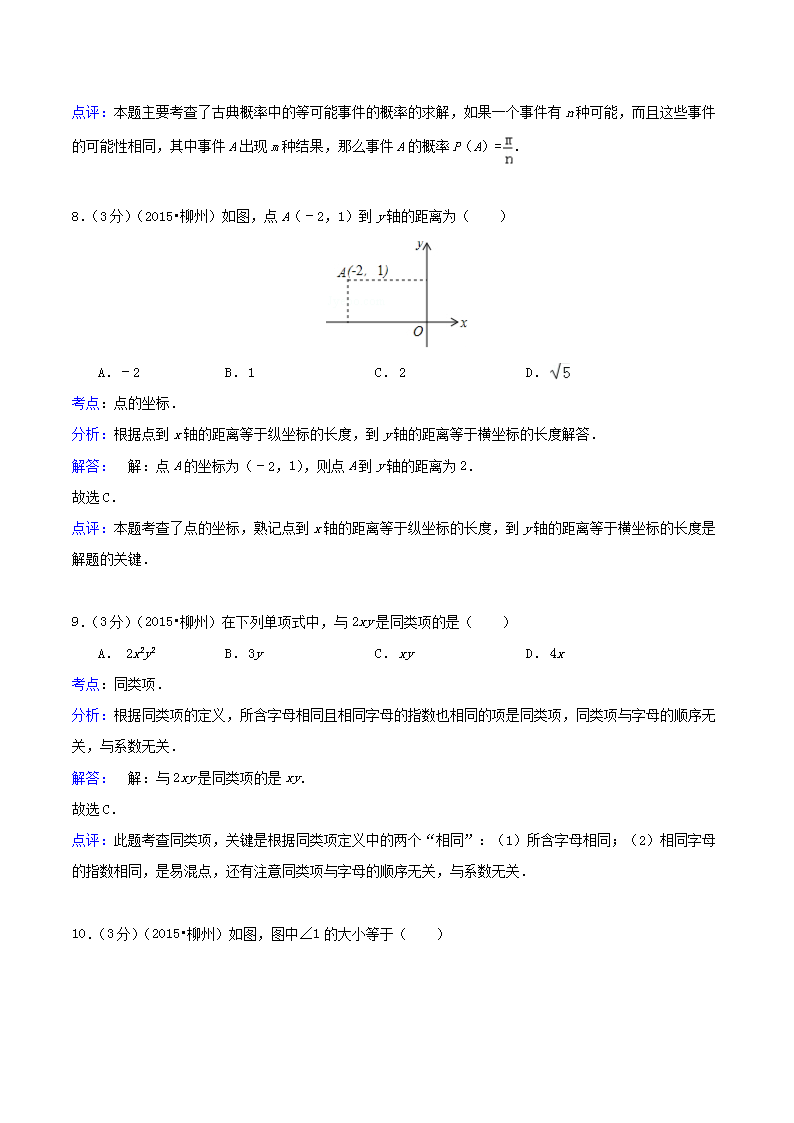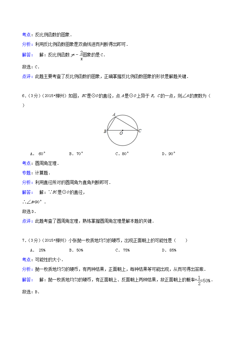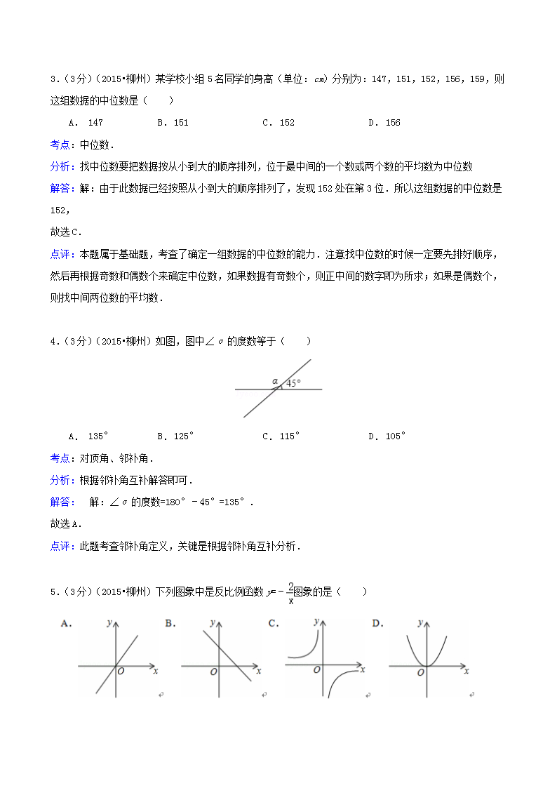【文档名称】 2015年广西柳州市中考数学真题及答案(Word版).doc