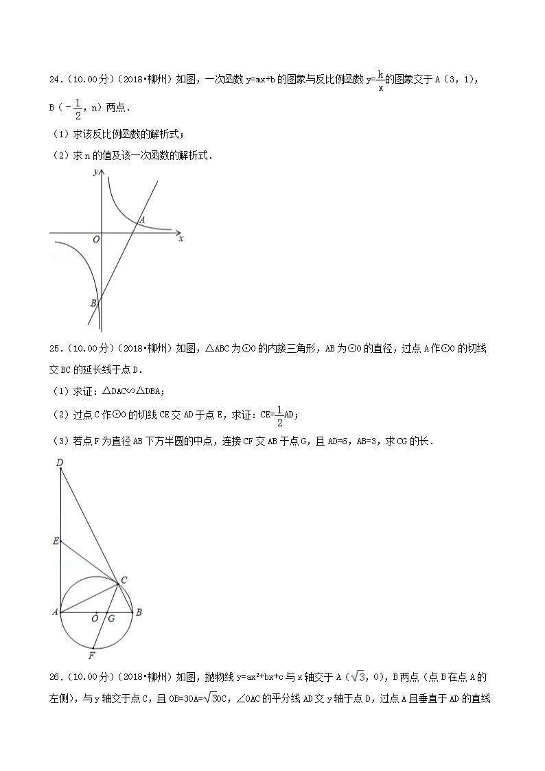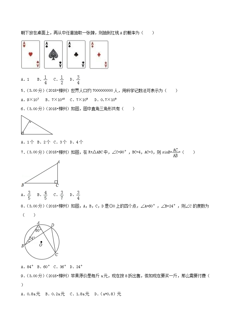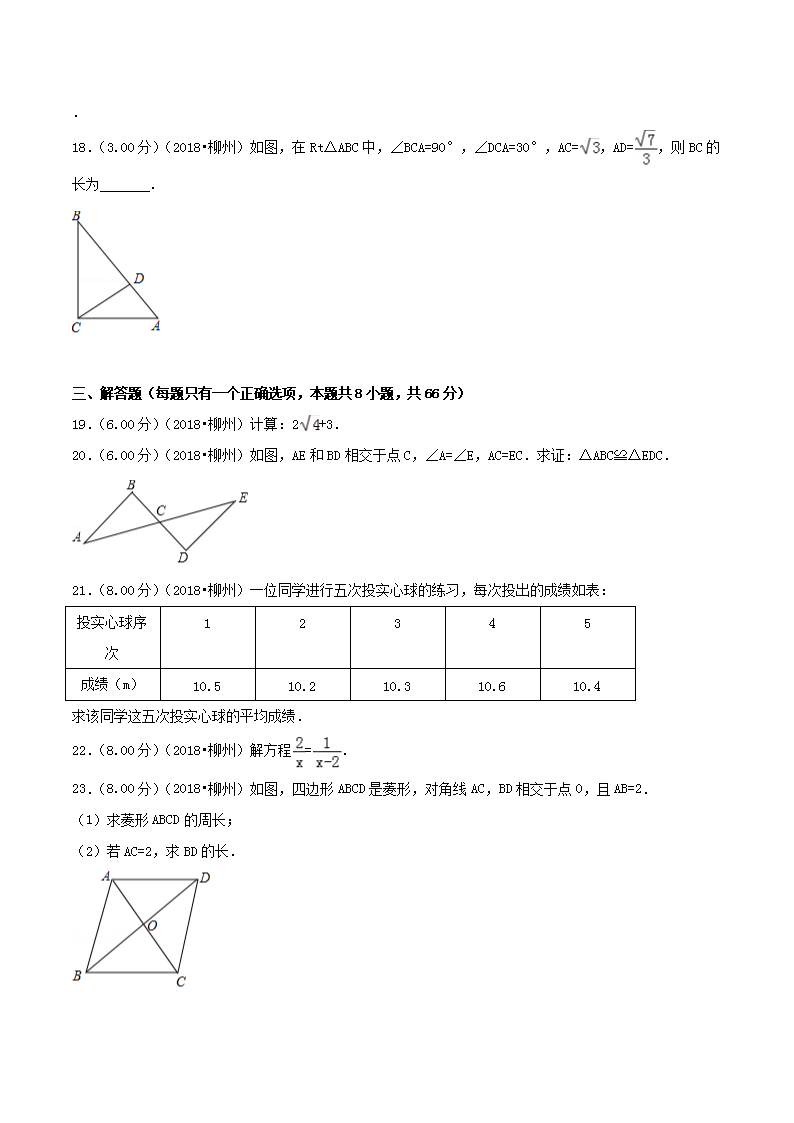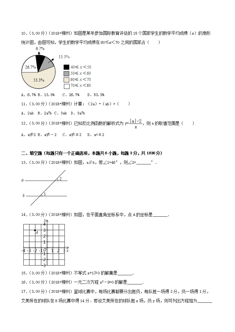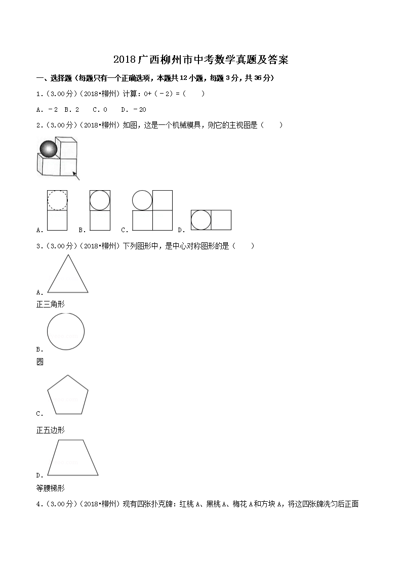 【文档名称】 2018广西柳州市中考数学真题及答案(Word版).doc