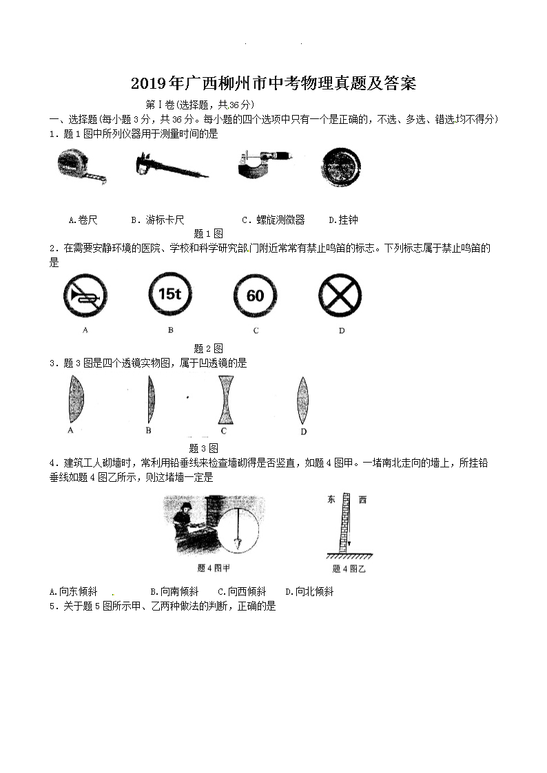【文档预览】 无忧考网整理发布2019年广西柳州市中考物理真题及答案(Word版),前五页预览如下: