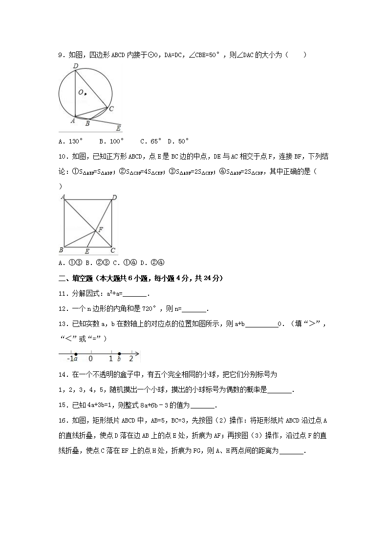 【文档名称】 2017年广东省东莞市中考数学试卷及答案(Word版).doc