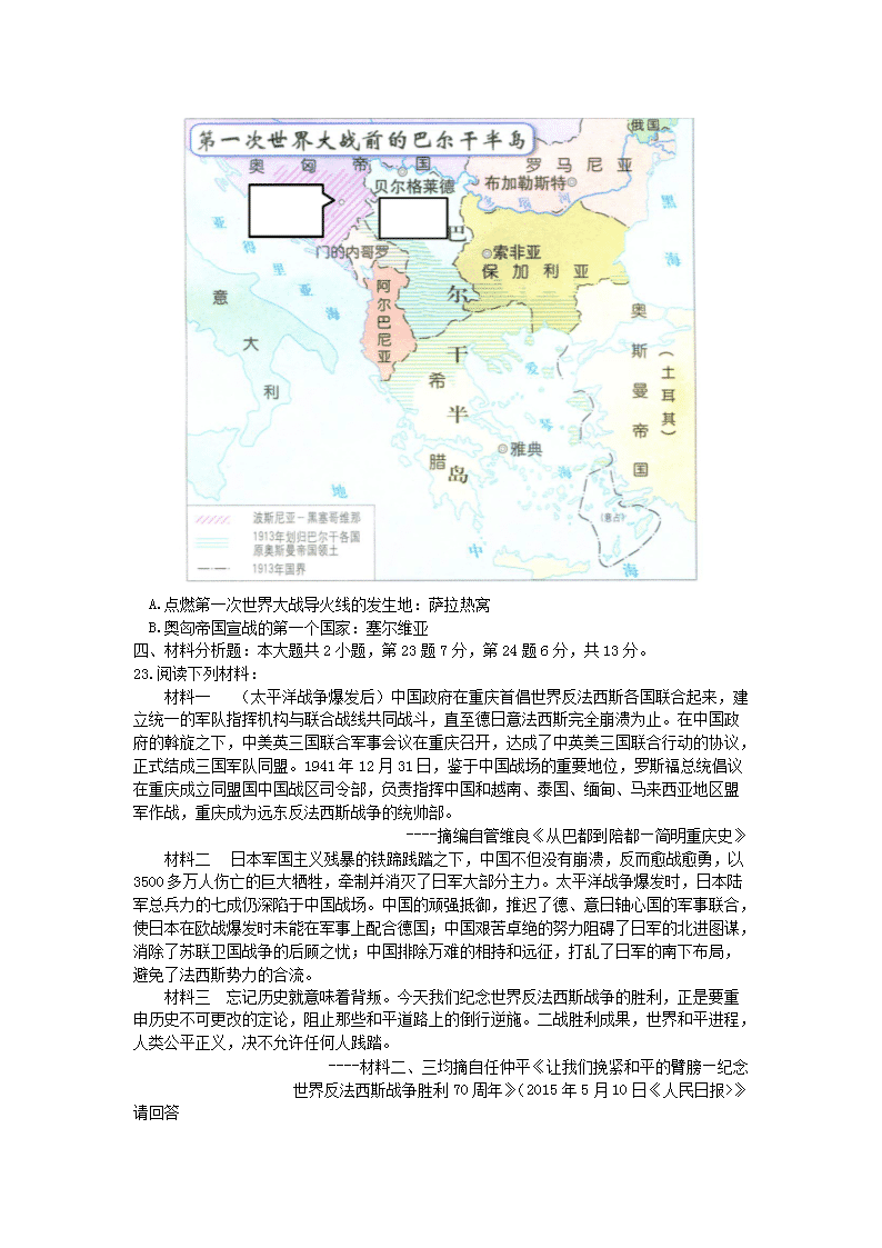 【文档名称】 2015年重庆市中考历史真题及答案B卷(Word版).doc