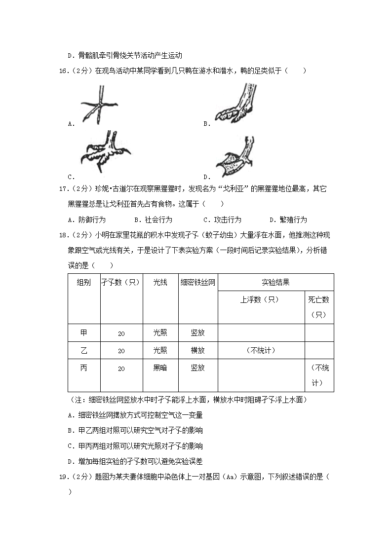 【文档名称】 2019年广东省东莞市中考生物试卷及答案(Word版).doc