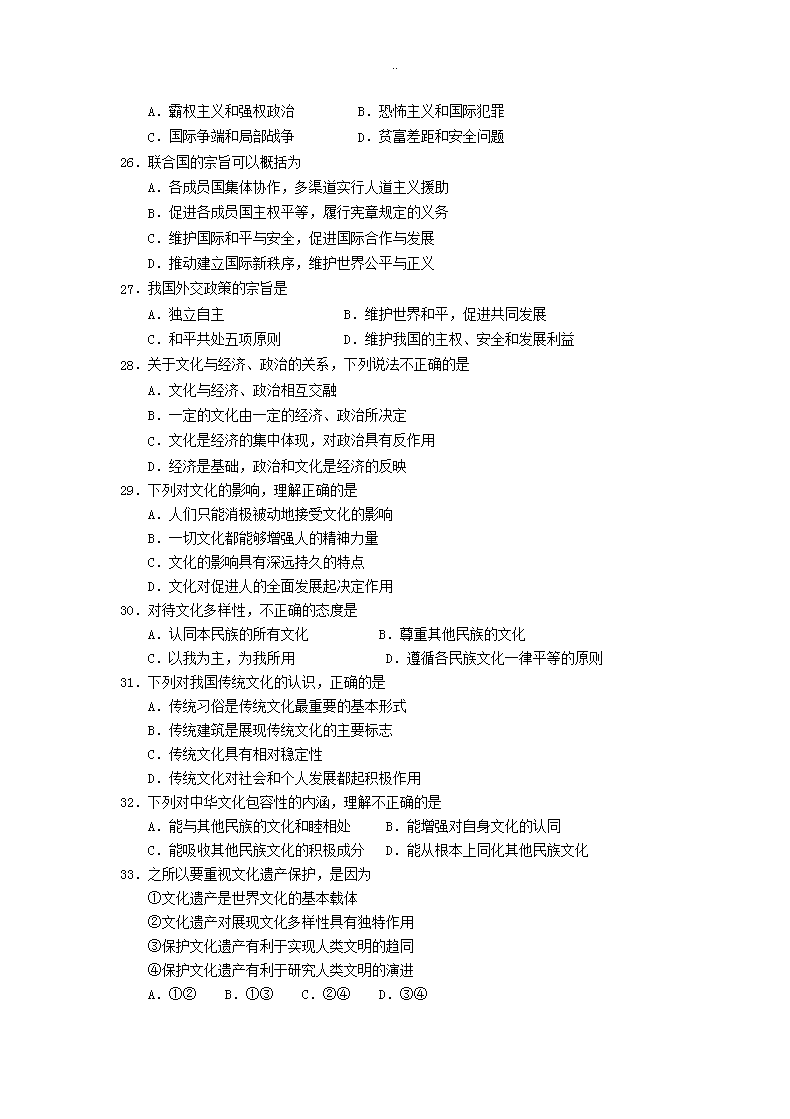 【文档名称】 2018年广东省高中会考思想政治真题及答案(Word版).doc