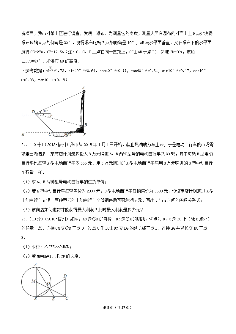 【文档预览】 无忧考网整理发布2018年广西梧州市中考数学真题及答案(Word版),前五页预览如下: