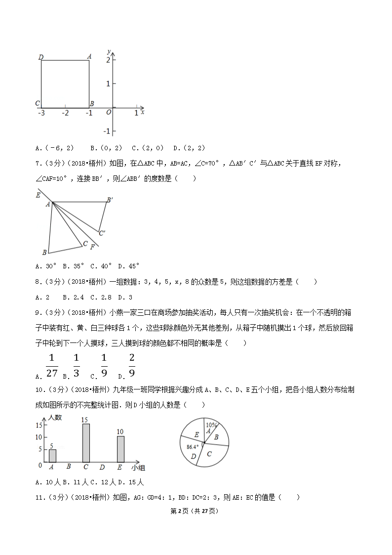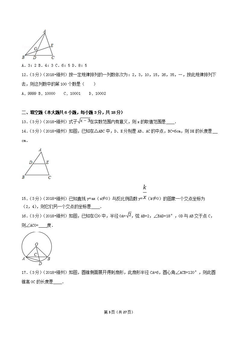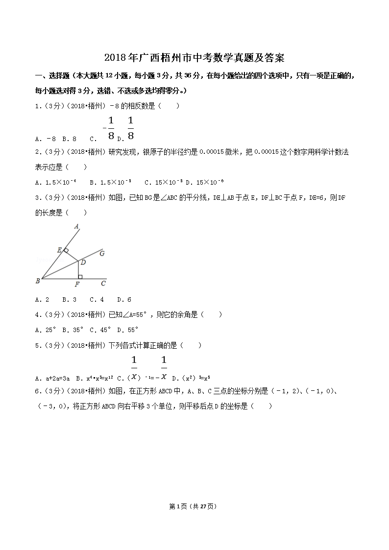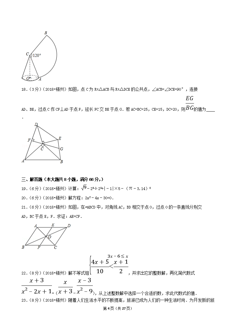 【文档名称】 2018年广西梧州市中考数学真题及答案(Word版).doc