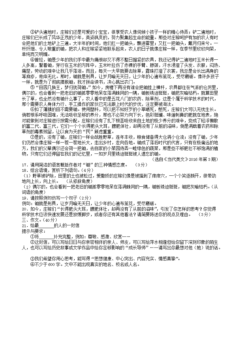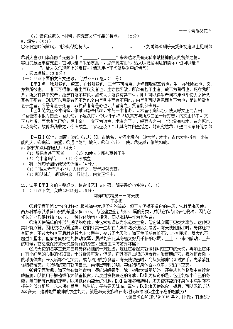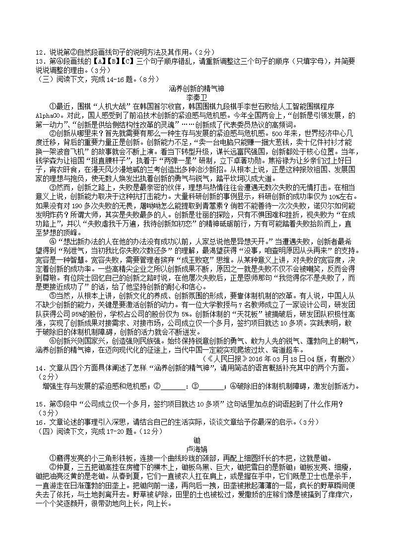 【文档名称】 2016年湖南省张家界市中考语文真题及答案(Word版).doc