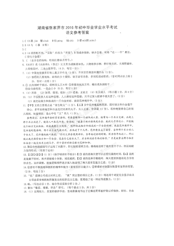 【文档预览】 无忧考网整理发布2016年湖南省张家界市中考语文真题及答案(Word版),前五页预览如下: