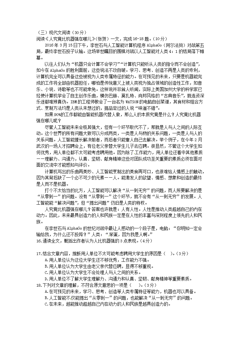 【文档预览】 无忧考网整理发布2016年福建省三明市中考语文真题及答案(Word版),前五页预览如下: