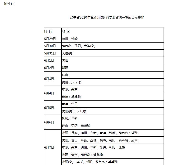 2020辽宁普通高校体育专业省统一考试时间:5月29日-6月
