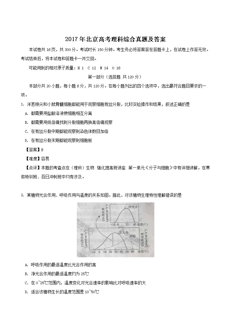 【文档名称】 2017年北京高考理科综合真题及答案(Word版).doc