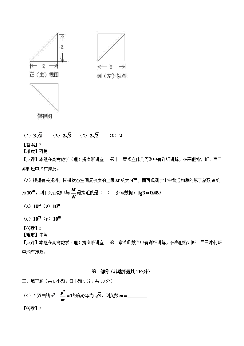 【文档名称】 2017年北京高考理科数学真题及答案(Word版).doc