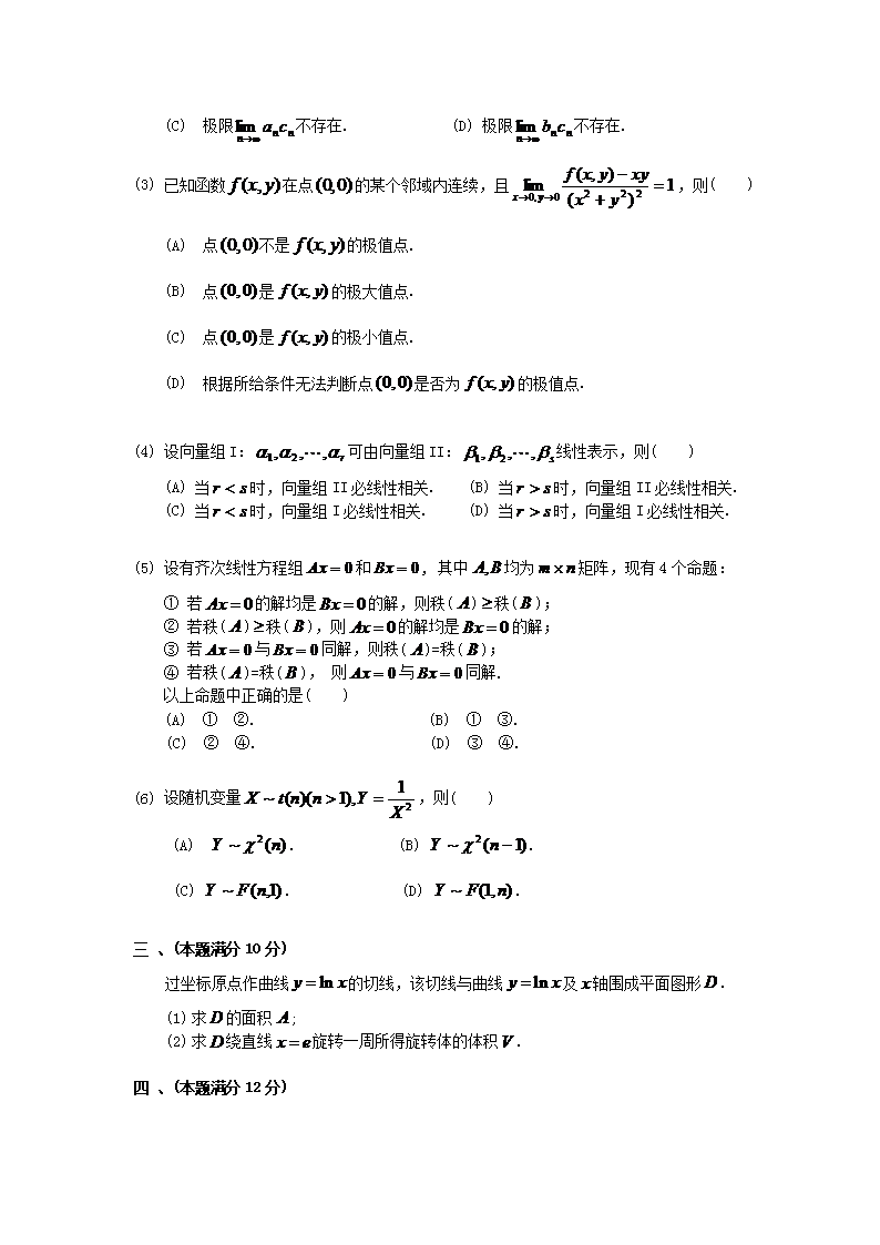 【文档预览】 无忧考网整理发布2003考研数学一真题及答案(Word版),前五页预览如下: