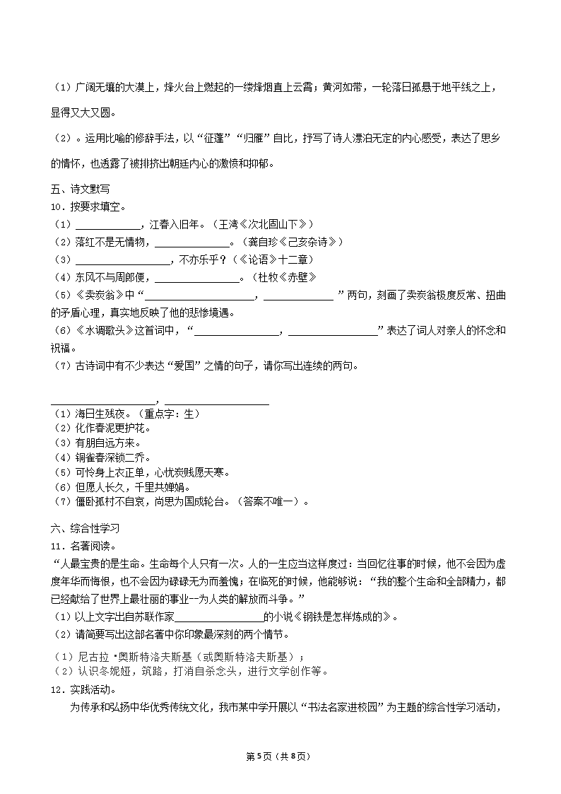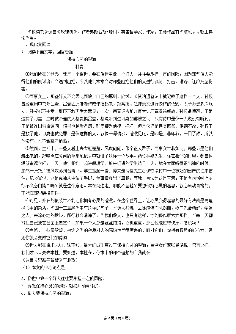 【文档预览】 无忧考网整理发布2019年广西贺州市中考语文真题及答案(Word版),前五页预览如下: