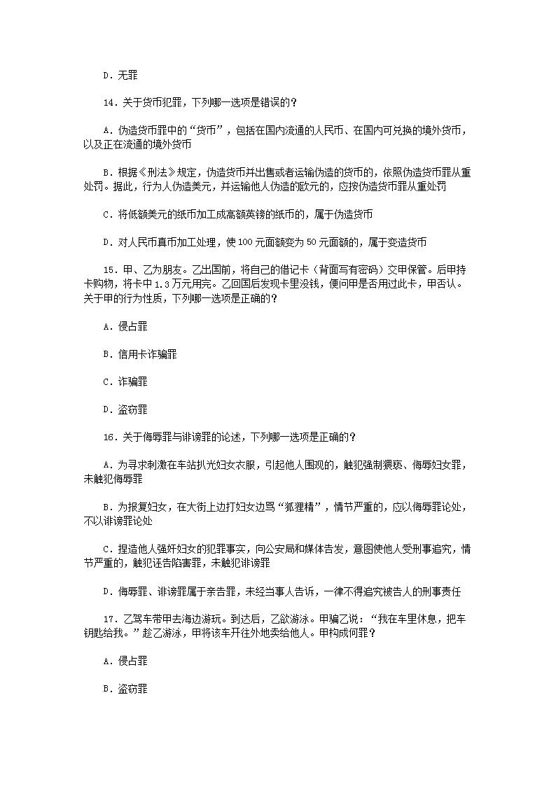 【文档名称】 2013年国家司法考试试卷二真题及答案(Word版).doc